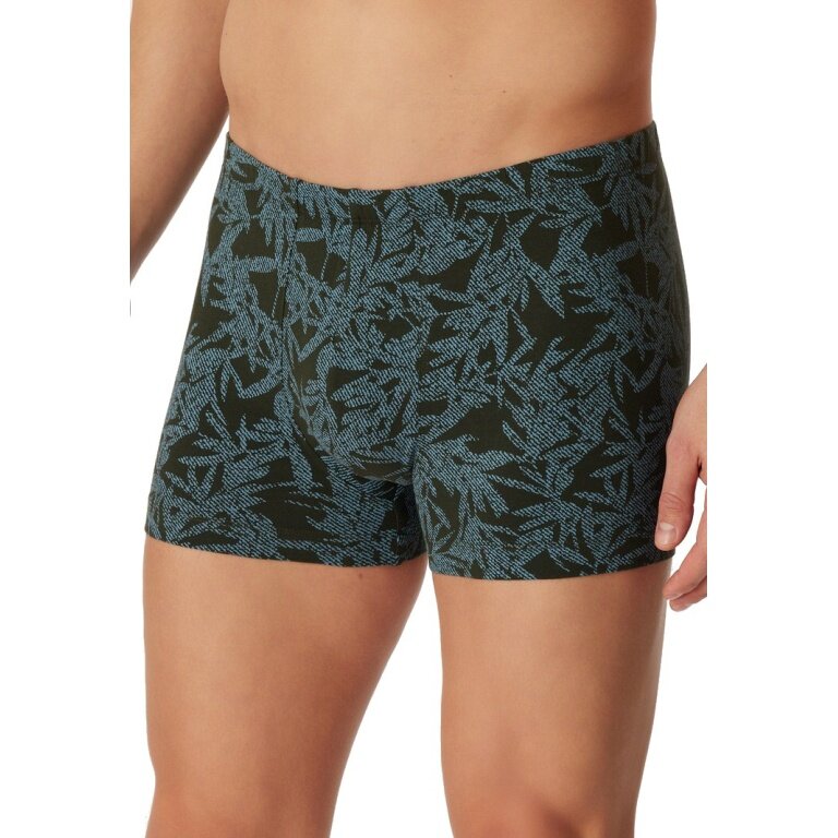 - multipack Herren-Shorts (2x schwarz, 1x dunkelbraun mit Blätter-Print in Petrol)