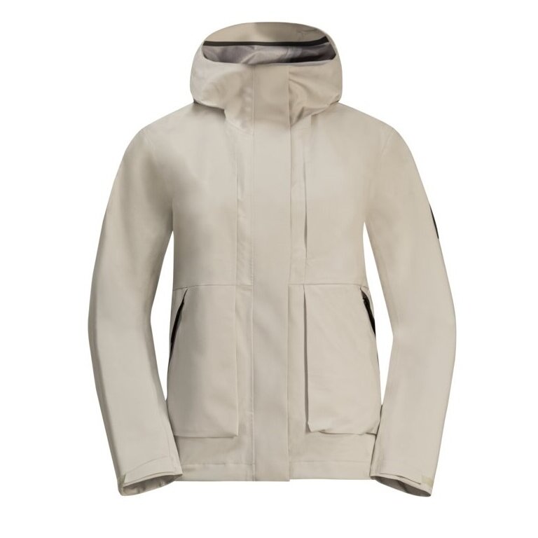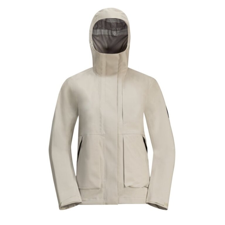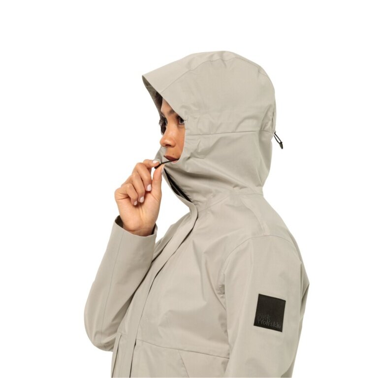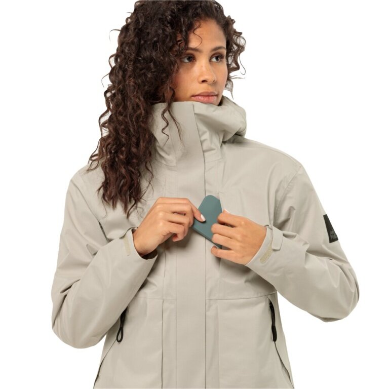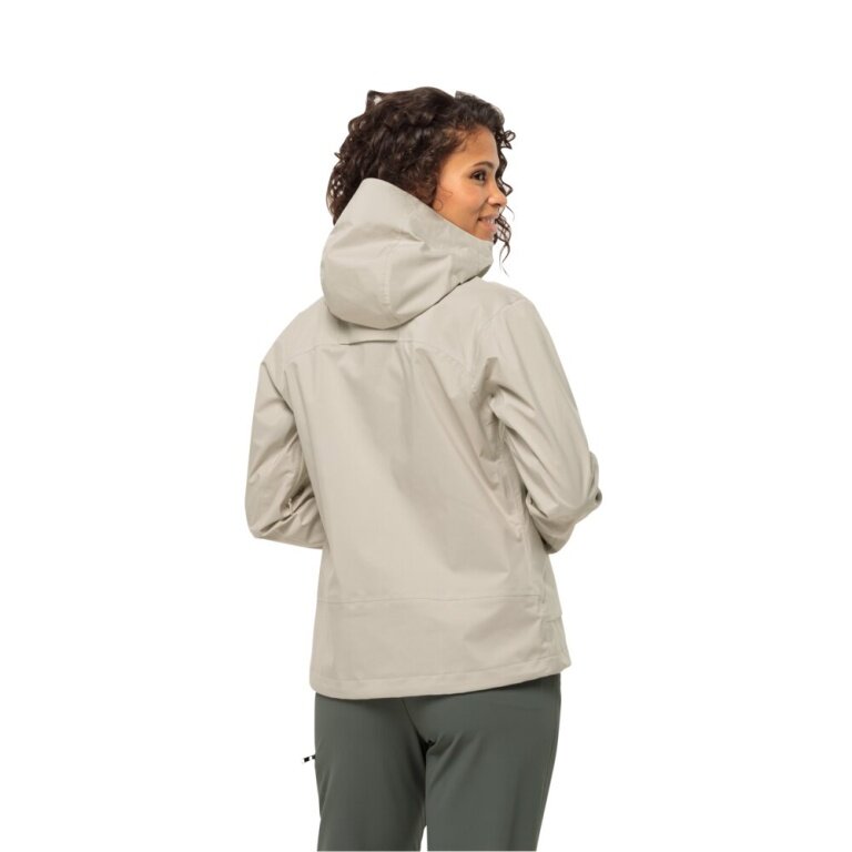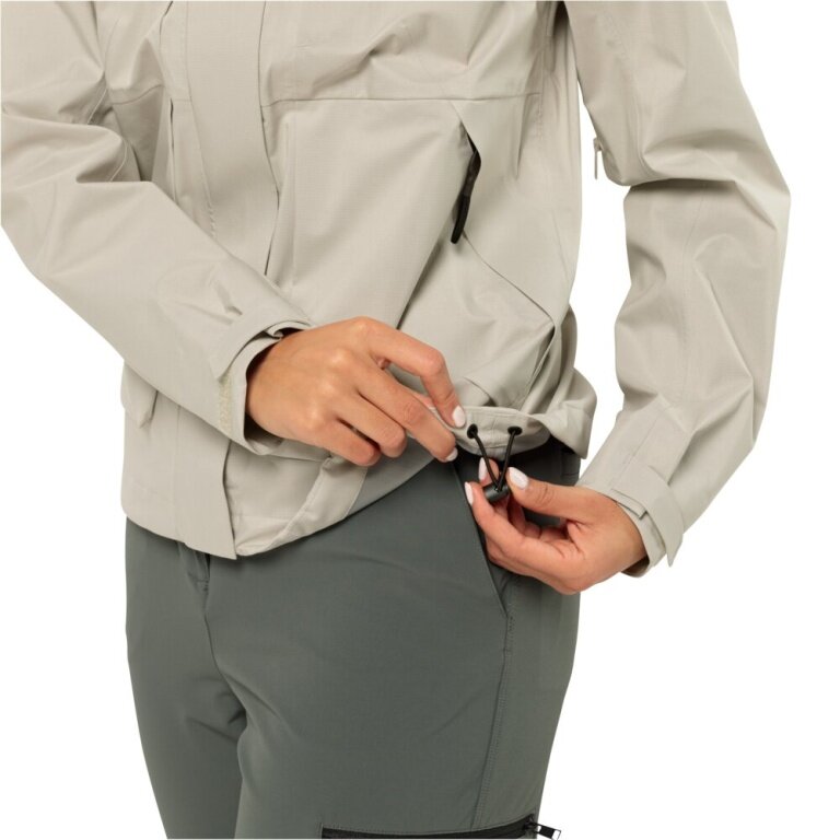 Jack Wolfskin Regenjacke Wandermood 3-Lagen (Hardshell, wasserdicht, winddicht) hellgrau Damen