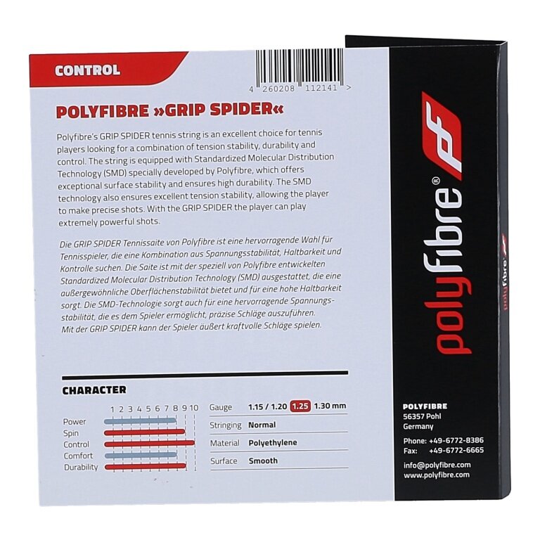 - die GRIP SPIDER Tennissaite von Polyfibre ist eine hervorragende Wahl für Tennisspieler, die eine Kombination aus Spannungsstabilität, Haltbarkeit und Kontrolle suchen