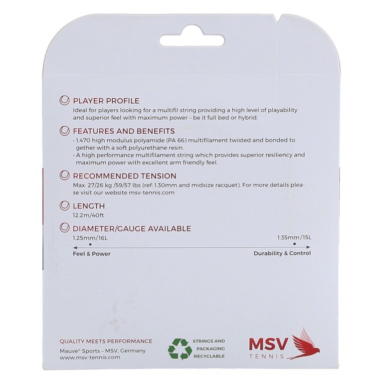 - die MSV Soft Touch eignet sich besonders für Spieler, die ein höchstes Niveau an Spielbarkeit, Power und Armschonung suchen