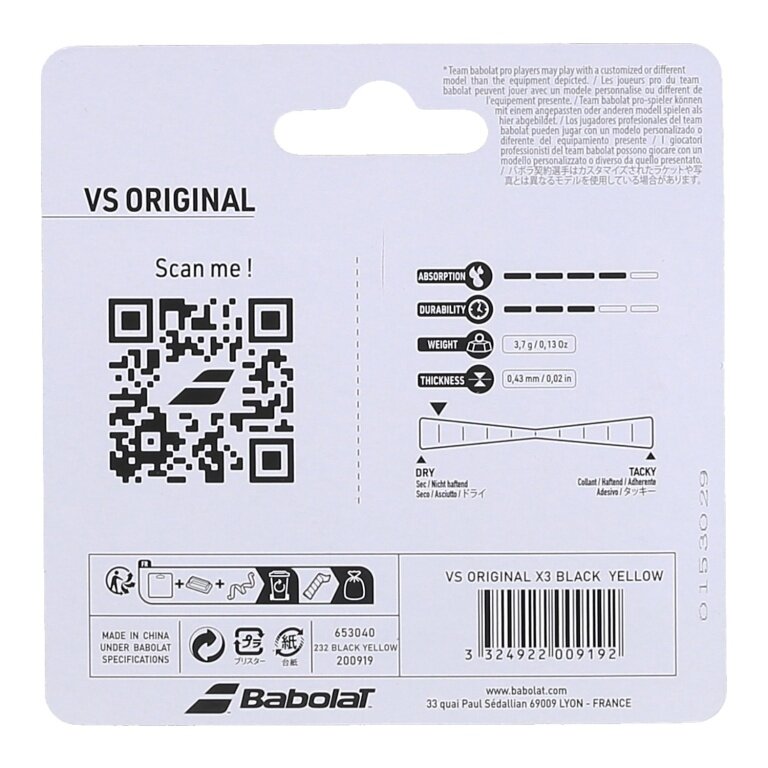 Babolat Overgrip VS Grip Original Feel (trocken, glatt) 0.43mm schwarz/gelb - 3 Stück