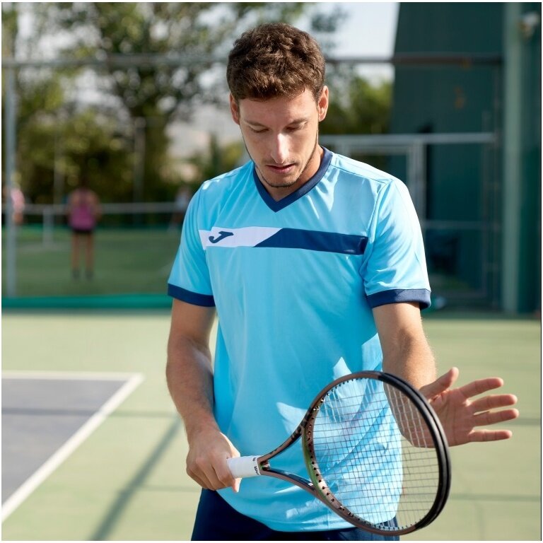 Joma Tennis-Tshirt Court (V-Ausschnitt) hellblau Herren