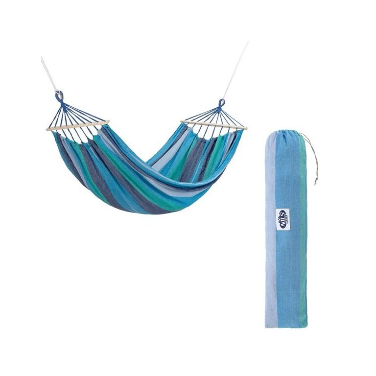 - der Stoff der Hängematte besteht aus Polyester und angenehmer, dicht gewebter Baumwolle