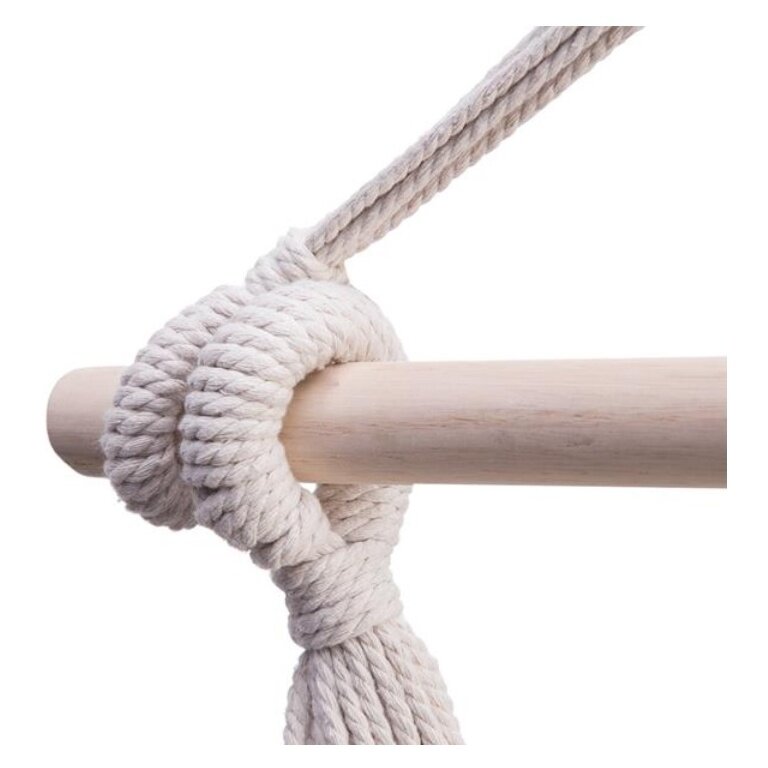 • der Hängesessel NC0033 hat dick gewebte, robuste Aufhängeschnüre, einen soliden Holzrahmen und einen starken Griff, so dass die maximal zulässige Belastung 120 kg beträg