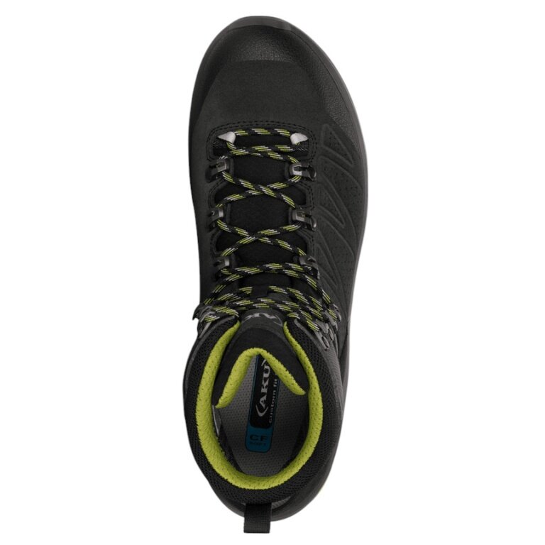 - Vibram-Sohle mit asymmetrischem Design und Rillen in den Stütz- und Schubbereichen, die eine Anpassung an die Morphologie des Geländes ermöglichen und die dynamische Wirkung des AKU Elica Natural Stride System maximieren, um die biodynamische Effizienz zu fördern.