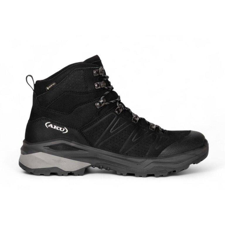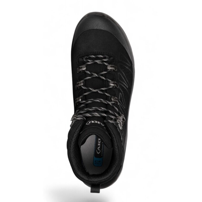 - Vibram-Sohle mit asymmetrischem Design und Rillen in den Stütz- und Schubbereichen, die eine Anpassung an die Morphologie des Geländes ermöglichen und die dynamische Wirkung des AKU Elica Natural Stride System maximieren, um die biodynamische Effizienz zu fördern.