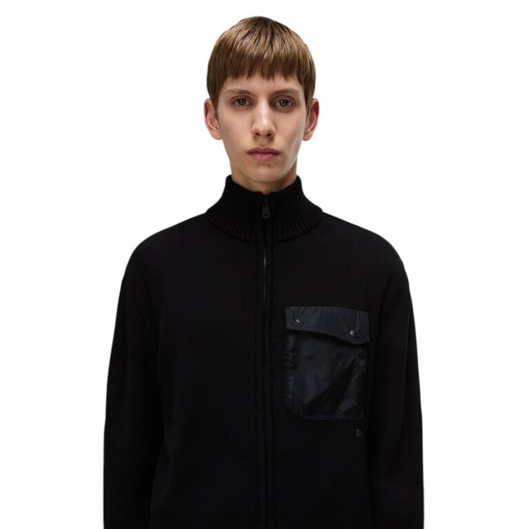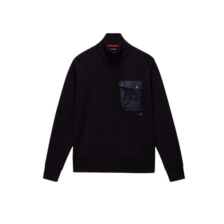 Napapijri Pullover Berti Full-Zip (Baumwolle, Brusttasche) schwarz Herren
