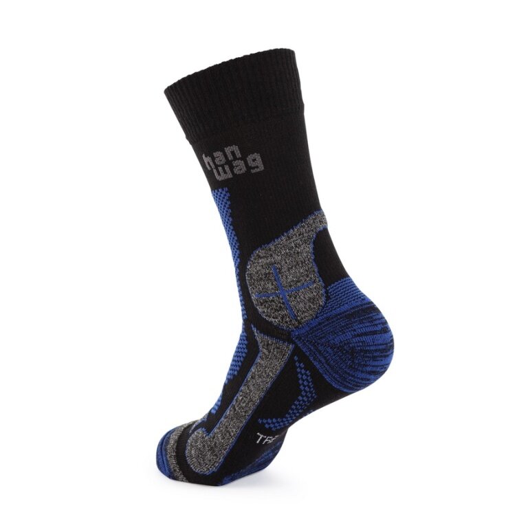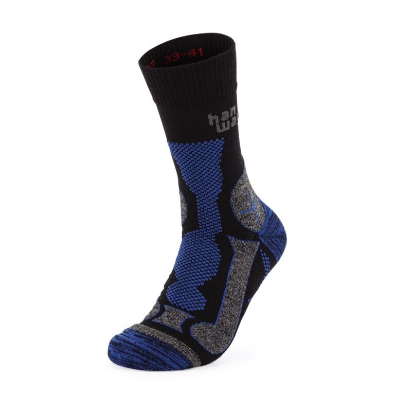 Hanwag Trekkingsocke Crew Trek Merino Sock (Merinowolle, hoher Tragekomfort) schwarz/blau - 1 Paar