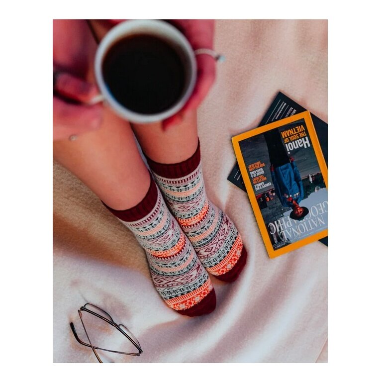 • mit verschiedenen nordischen, wikinger- oder weihnachtlichen Motiven werden sie Ihre Füße auf raffinierte und originelle Weise wärmen.