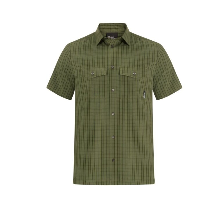 Jack Wolfskin Wander- und Reisehemd Thompson 2023 kurzarm khaki/grün Herren