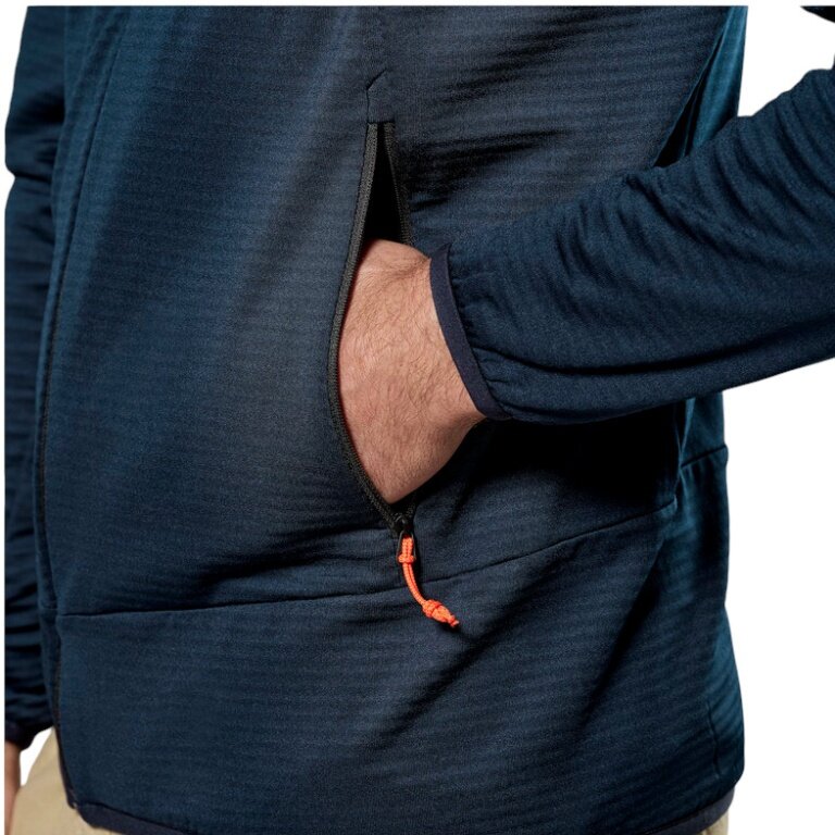 - weitere Features wie die zwei seitlichen Reißverschlusstaschen, die elastischen Saum- und Ärmelbündchen und die warme, vor Kälte schützende Kapuze machen die Fleecejacke zum idealen Ganzjahresbegleiter.