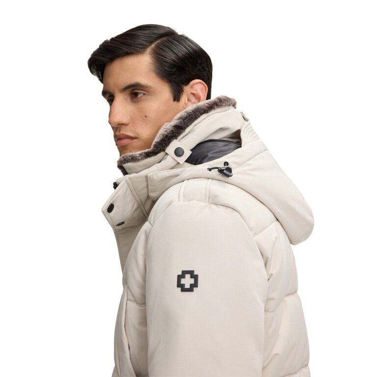 - wasser- und winddichtes Steppjacke mit Stehkragen und abknöpfbarem Kunstfellbesatz