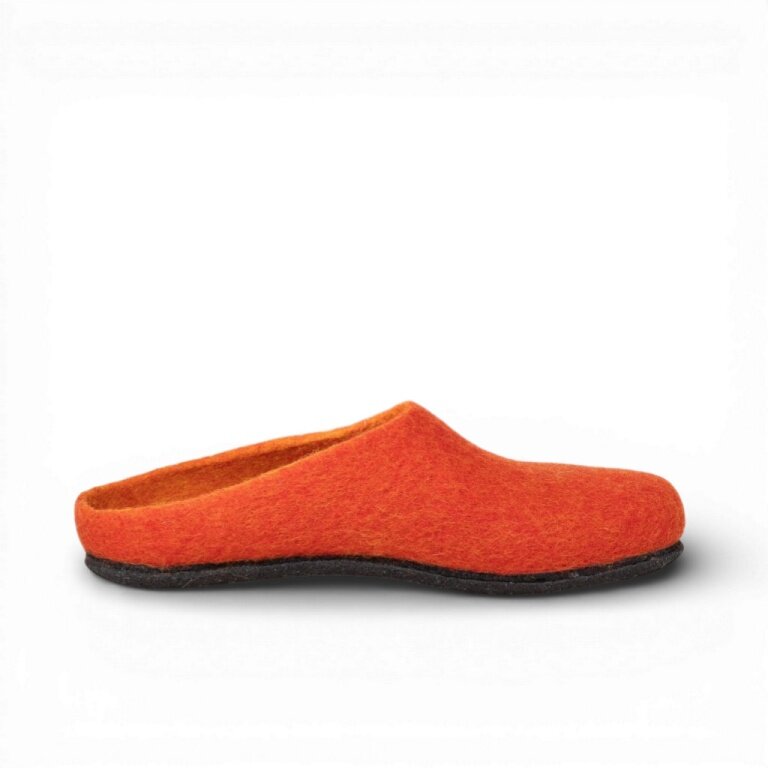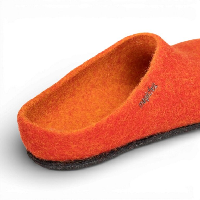 - das Obermaterial bestehend aus 100% feinster, mulesing-freier Merinowolle wird nahtlos über einen Leisten gefilzt und sorgt für ein angenehmen Fuß-Klima