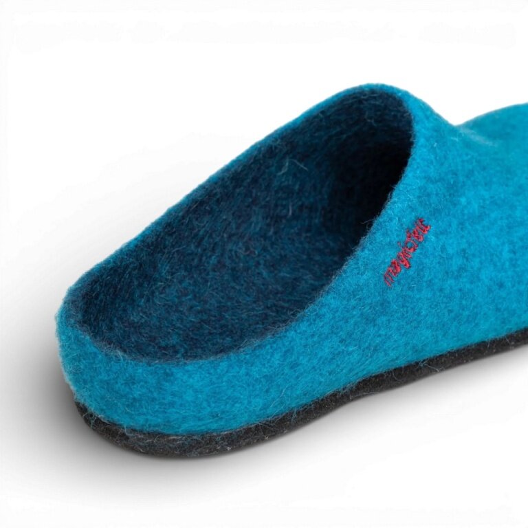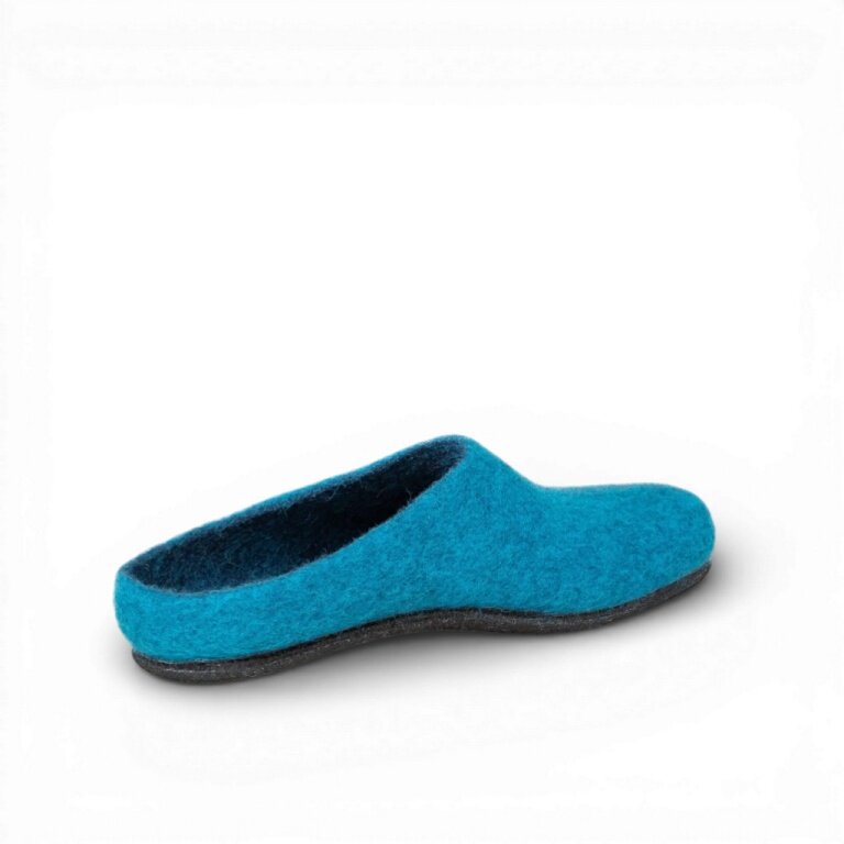 - das Obermaterial bestehend aus 100% feinster, mulesing-freier Merinowolle wird nahtlos über einen Leisten gefilzt und sorgt für ein angenehmen Fuß-Klima