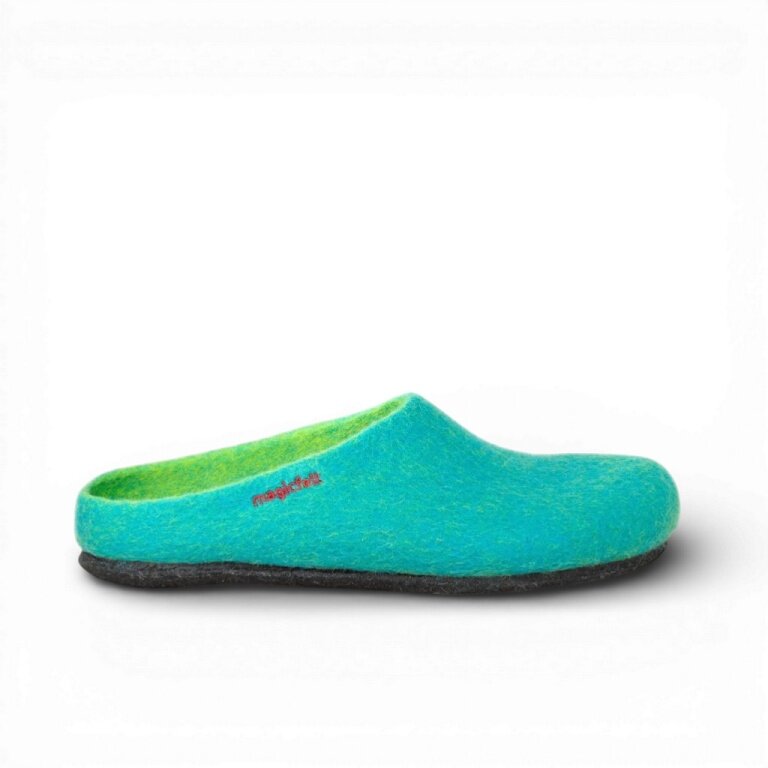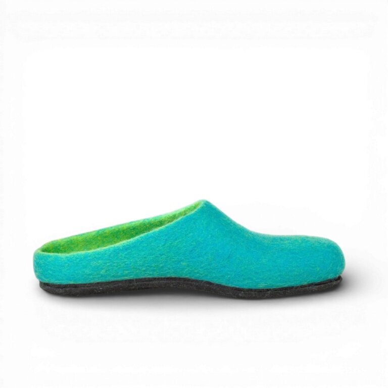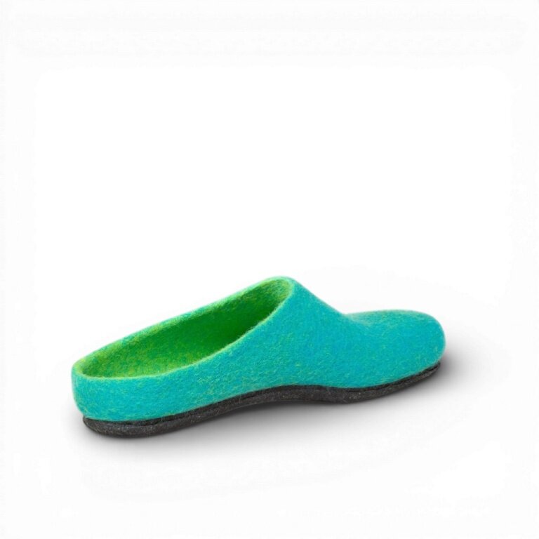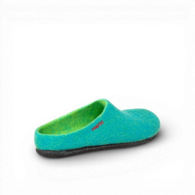 - das Obermaterial bestehend aus 100% feinster, mulesing-freier Merinowolle wird nahtlos über einen Leisten gefilzt und sorgt für ein angenehmen Fuß-Klima