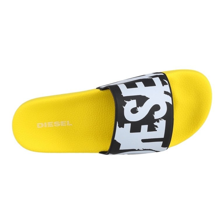 - die trendigen Pantoletten aus robustem, wasserabweisendem PVC sind am Fußbett mit dem Diesel-Logo und mit einem Kontraststreifen verziert