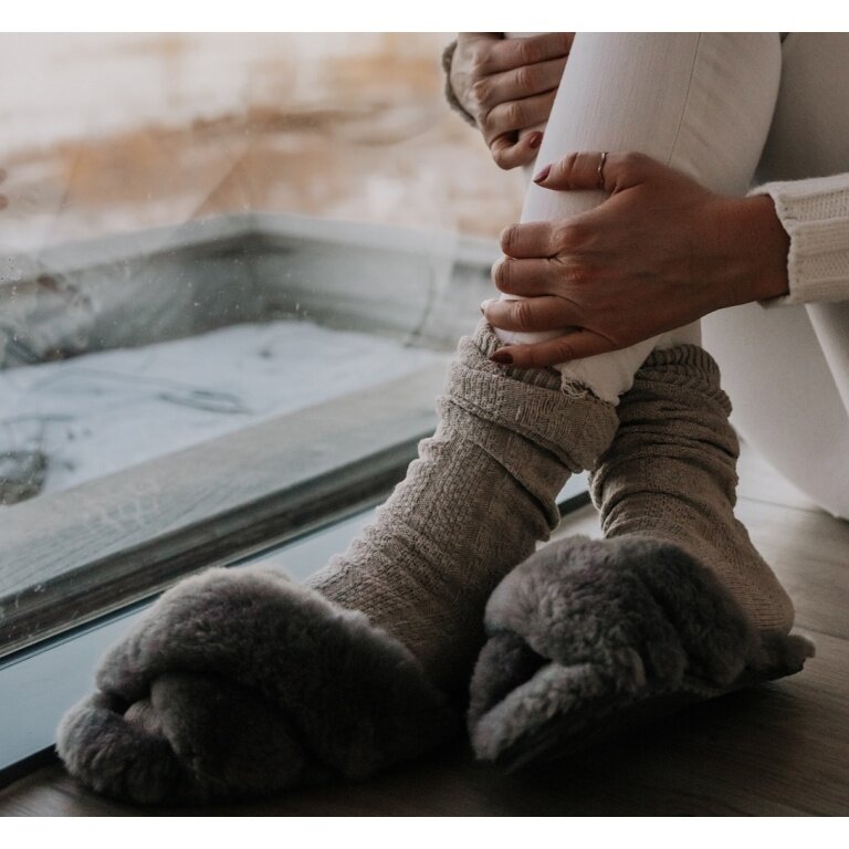 - nach kurzer Zeit des Tragens gibt das Lammfell nach und schmiegt sich perfekt um Deine Füße