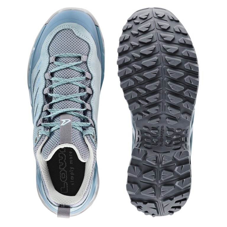 - der dynamische Wanderhalbschuh INNOVO LO Ws verfügt über eine zweifach angespritzte und komfortabel dämpfende LOWA® DYNAPU®-Zwischensohle sowie einer neugestalteten Laufsohle im "Chunky Style", die dank des multidirektionalen Stollendesigns und der dadurch größeren Kontaktfläche optimalen Grip bietet.