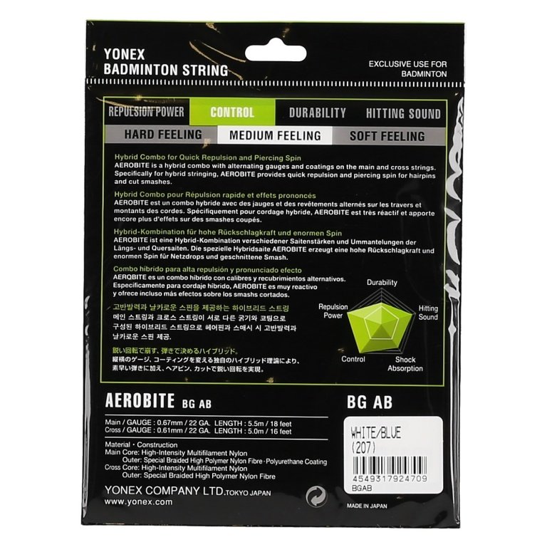 Yonex Badmintonsaite Aerobite Hybrid 0.61/0.67 weiss/blau 10m Set