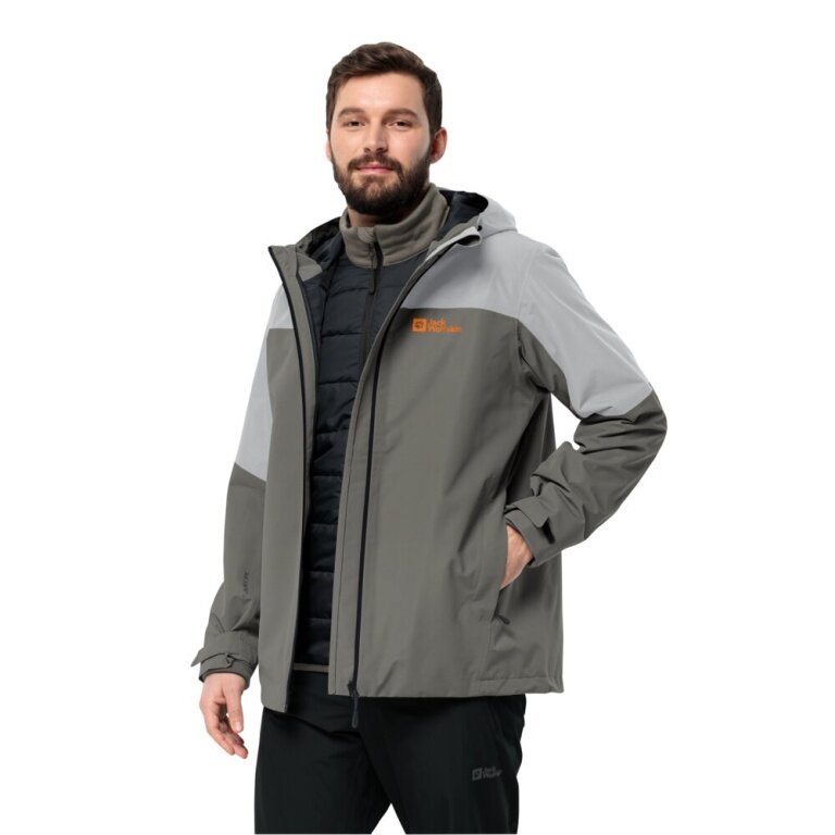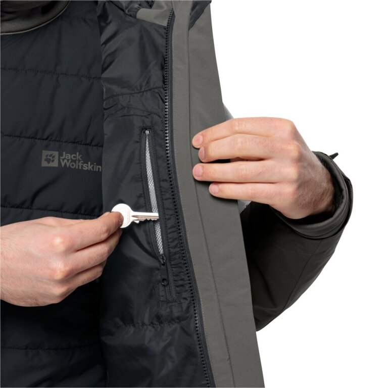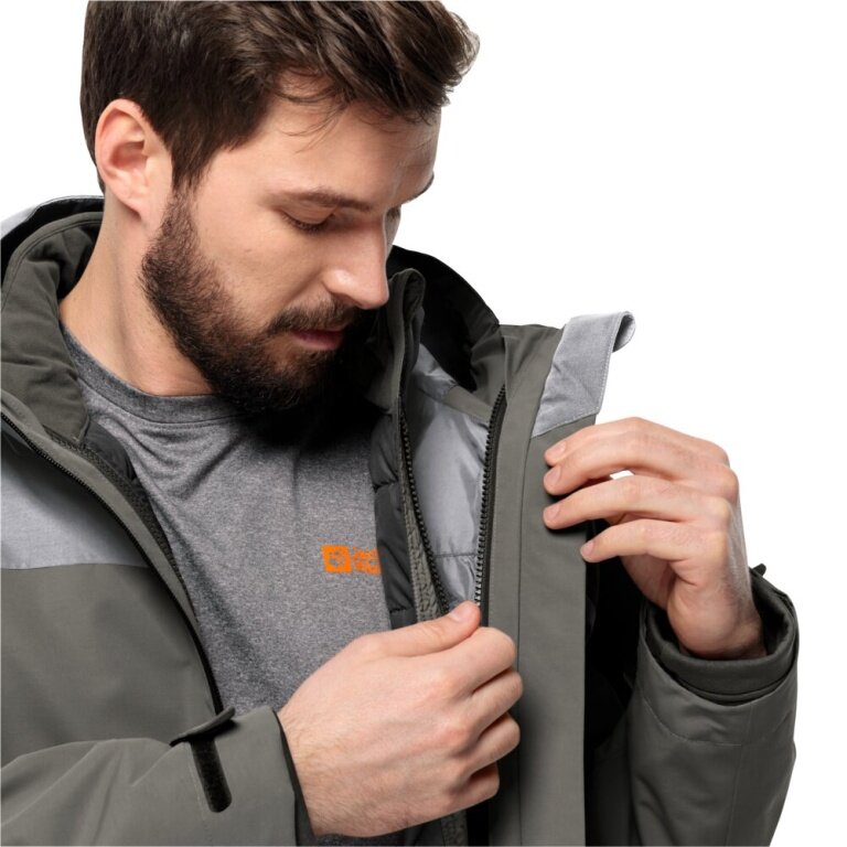 Jack Wolfskin Winterjacke Glaabach 3in1 2023 (wasserdicht, winddicht, mit Fleece-Innenjacke) grau Herren