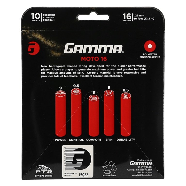 Gamma Tennissaite Moto (Haltbarkeit+Spin) schwarz 12m Set