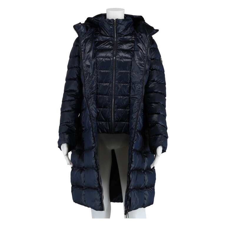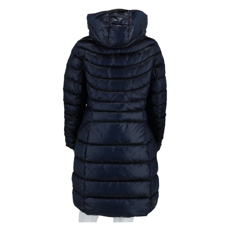- mittellange Damenjacke mit fester Kapuze, gefertigt aus recyceltem Gewebe in changierender Optik und mit wasserabweisender Behandlung