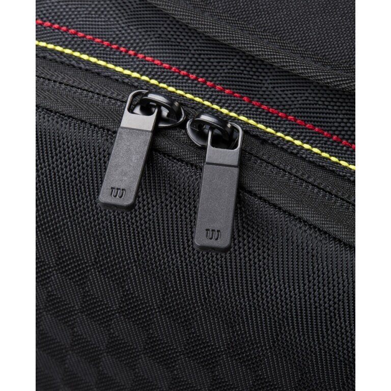 - die beiden Hauptfächer, die jeweils thermoreguliert sind, um vor extremen Temperaturen zu schützen und die Schlägerspannung zu erhalten, bieten genug Platz für bis zu neun Schläger.