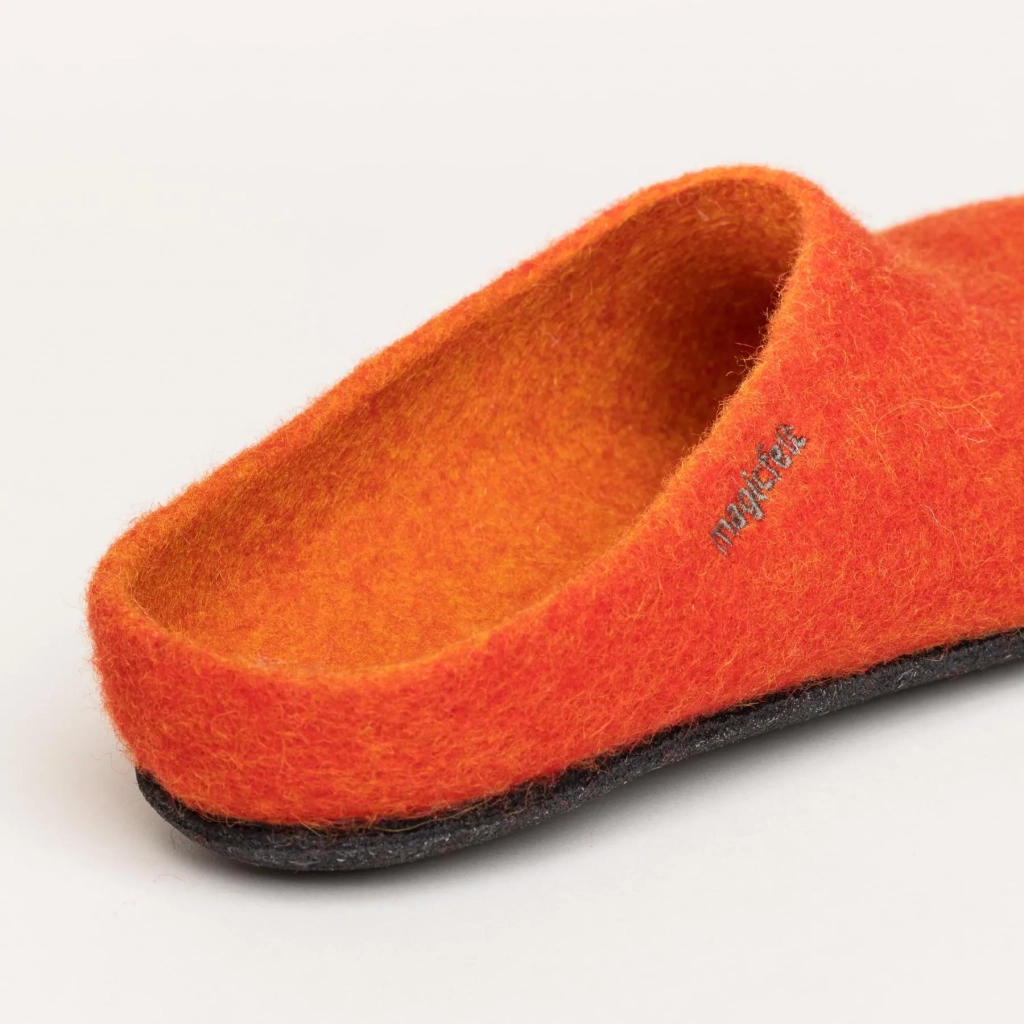 - das Obermaterial bestehend aus 100% feinster, mulesing-freier Merinowolle wird nahtlos über einen Leisten gefilzt und sorgt für ein angenehmen Fuß-Klima