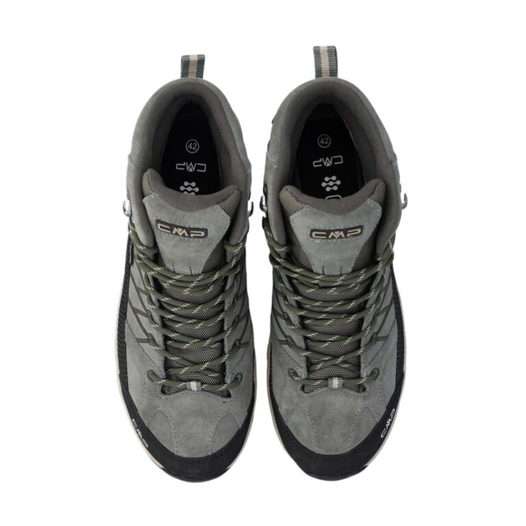 • CMP Rigel Mid ist ein hoher, wasserundurchlässiger und vielseitiger Herren-Trekkingschuh, der sich dank der Struktur und des Material-Gemischs der Sohle CMP FullOn GRIP für alle trockenen und nassen Oberflächen eignet