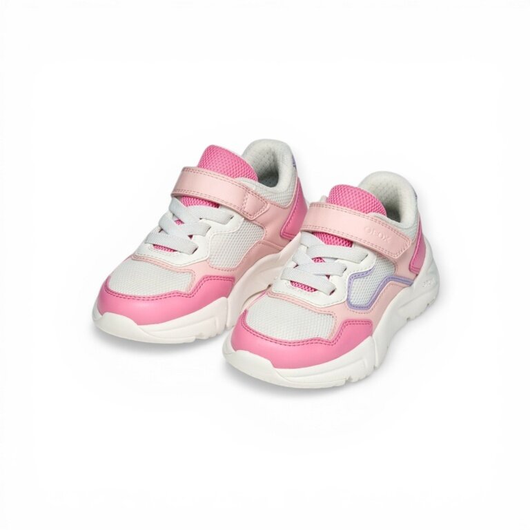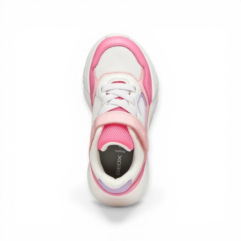 - hier in Weiß und Rosa erhältlich, ist er aus Material in Lederoptik und Mesh mit Verstärkung an der Spitze gefertigt.