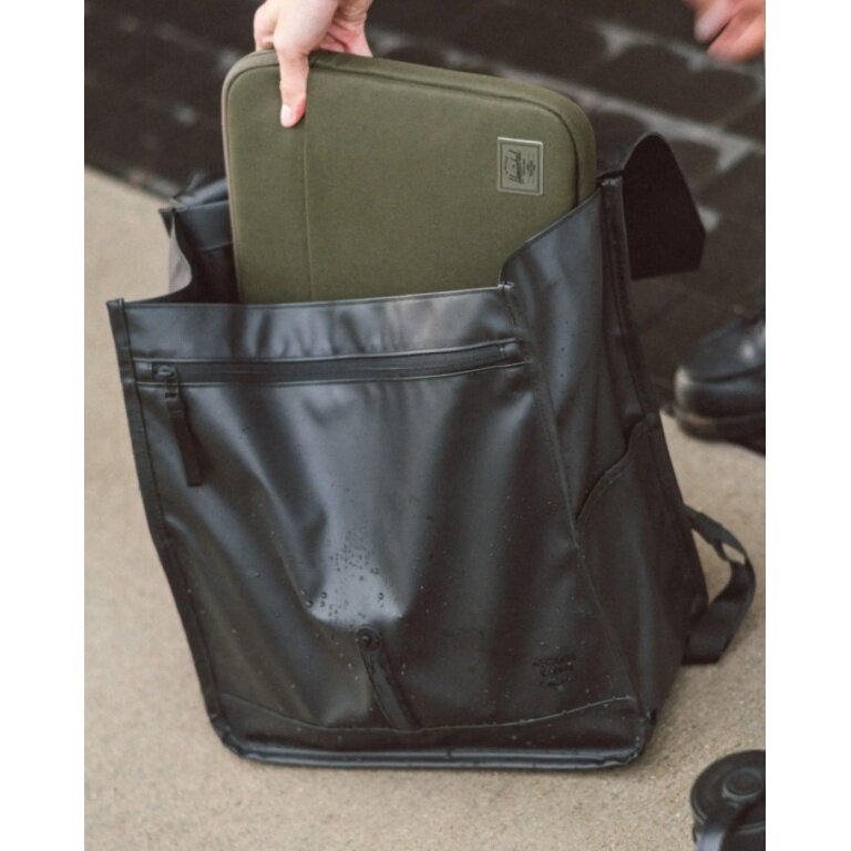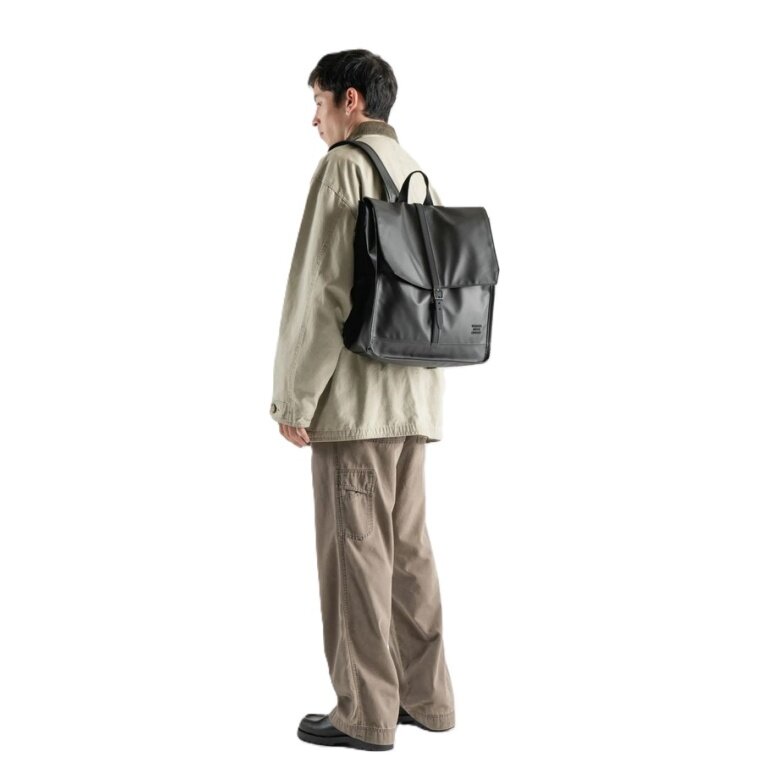 • der Weather Resistant City Backpack ist mit einer matten Beschichtung versehen und von regnerischen Pendelfahrten in Vancouver, British Columbia, inspiriert.