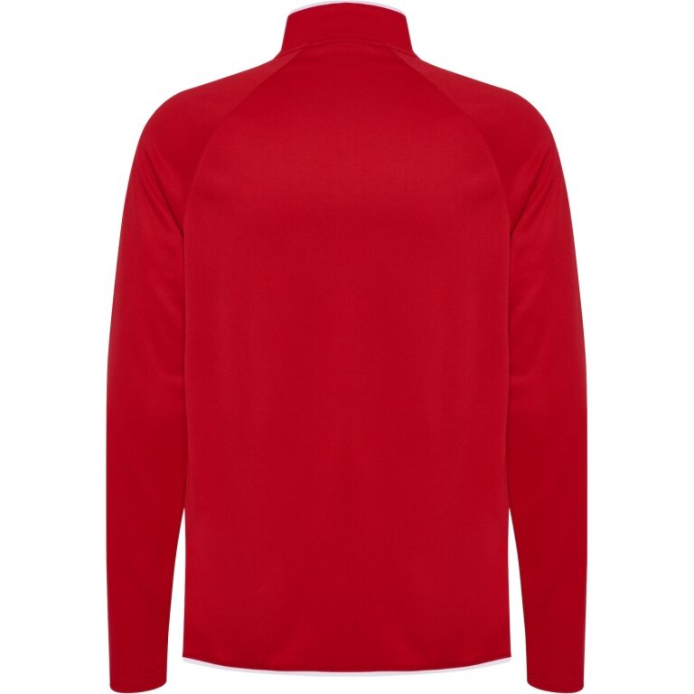 - es hat einen hohen Kragen mit halbem Reißverschluss, Raglanärmel und Kontrasteinsätze an den Schultern, die das sportliche Design unterstreichen.