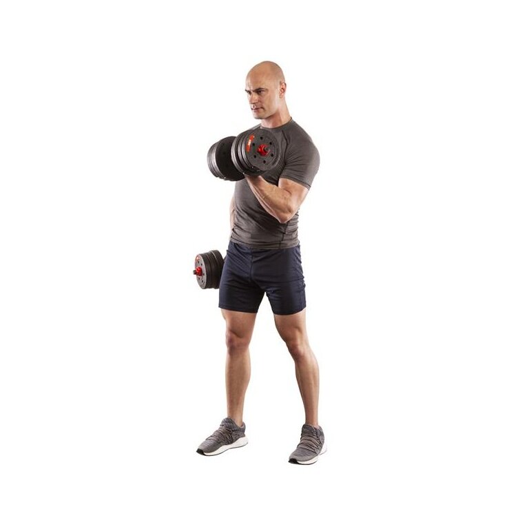 - die Verschlüsse und der ideal angepasste Durchmesser der Öffnung für Hantelscheiben ermöglichen es, schnell die Hantelscheiben zu wechseln und sie entsprechend fest zu drücken und an der entsprechenden Stelle zu halten