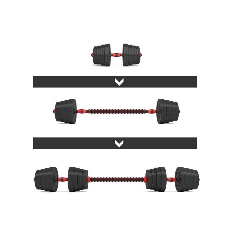 - mit dem speziellen Verbindungselement bekommen Sie die Möglichkeit der Zusammensetzung beider Kurzhanteln in eine Langhantel
