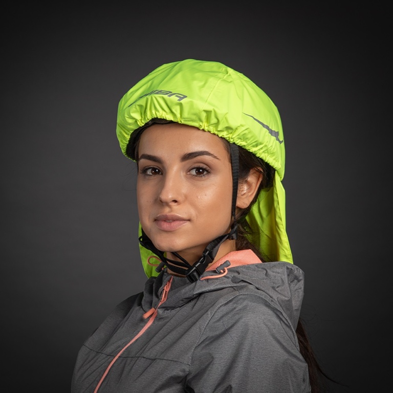 Chiba Regenschutz Pro (Raincover) für Fahrradhelme - wasser- und winddicht, Nackenschutz - neongelb