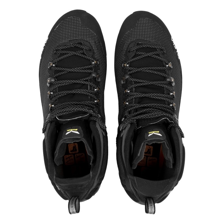 - das robuste, hochfeste Schoeller®-Nylon-Obermaterial ist mit einem Gummirand und TPU-Einsätzen für zusätzlichen Fels- und Geröllschutz sowie dem patentierten, mit Kevlar-Drähten verstärkten SALEWA® 3F-System versehen