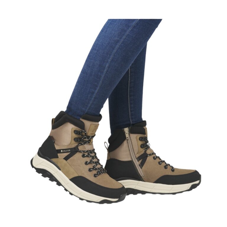 • Rieker Schnürstiefel für Damen in Braun, aus wertigem Textil gefertigt.