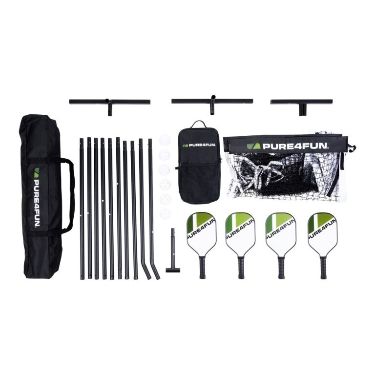 - Wir präsentieren das Pure4Fun Pop-up-Pickleball-Set mit vier Schlägern mit FG-Schlagfläche und einem 10 mm starken Wabenverbundkern