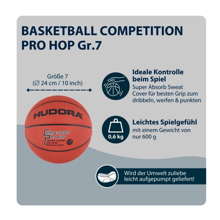 • für ein authentisches Profi-Feeling beim Training ist der Basketball Competition Pro Hop von HUDORA der perfekte Spielball: Größe und Gewicht entsprechen der offiziellen Norm