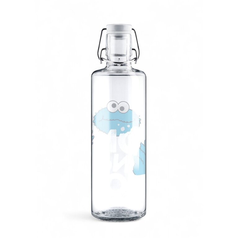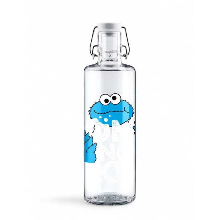 soulbottles Trinkflasche krümelmonster Glas (Glasflasche, Keramikdeckel, Edelstahlbügel) 1 Liter transparent