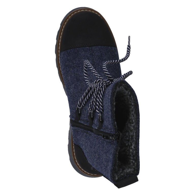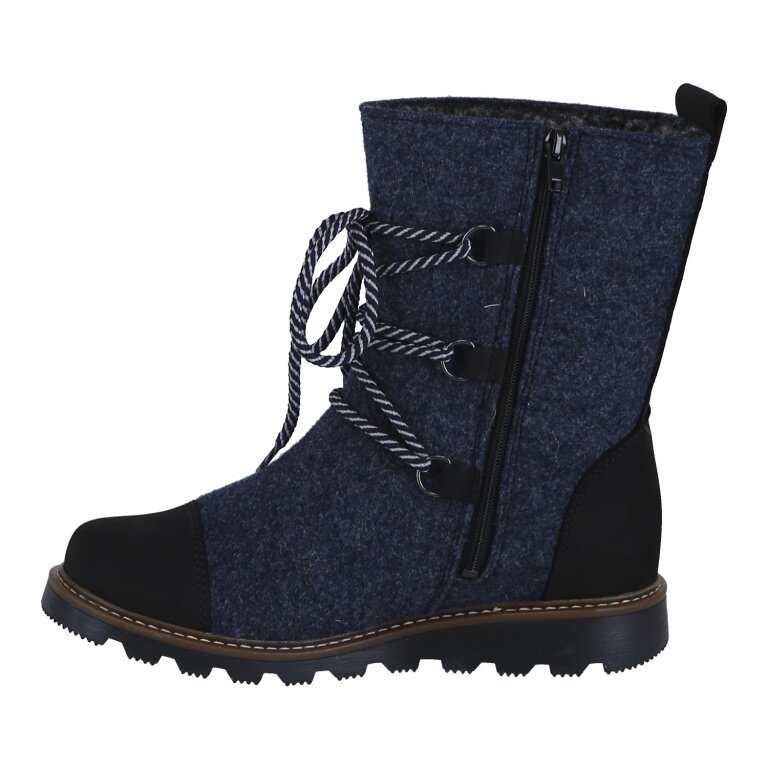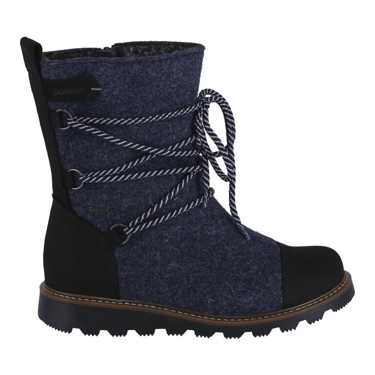 - OBERMATERIAL: dunkelblauer Wollfilz und braunes, gewachstes Nubuk – weist Wasser und Schmutz ab