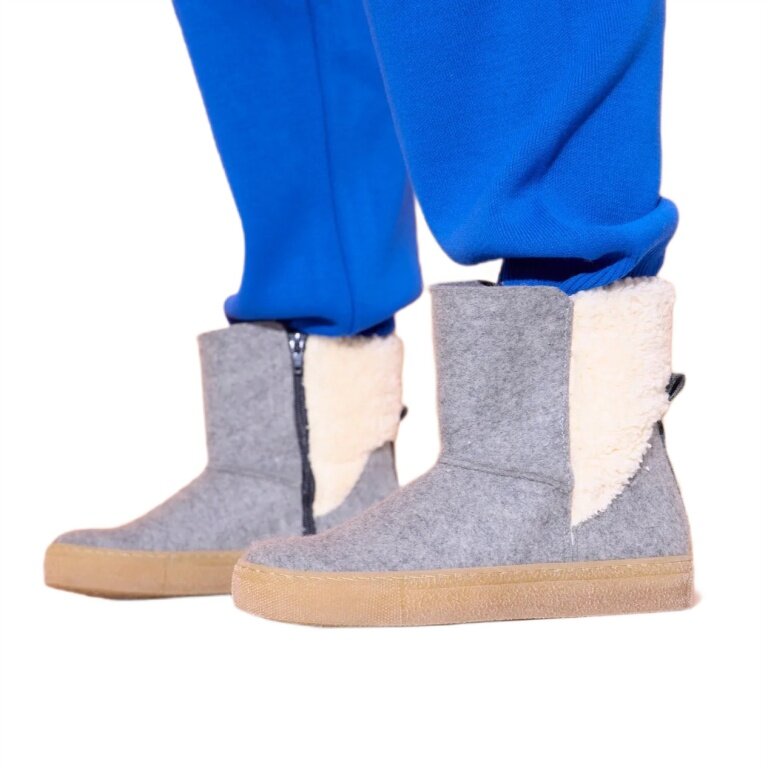 - warmer Bootie aus portugiesischer Wolle mit Biobaumwollplüsch an der Ferse
