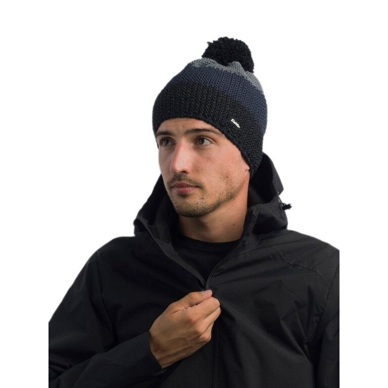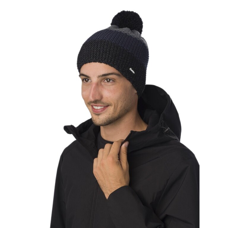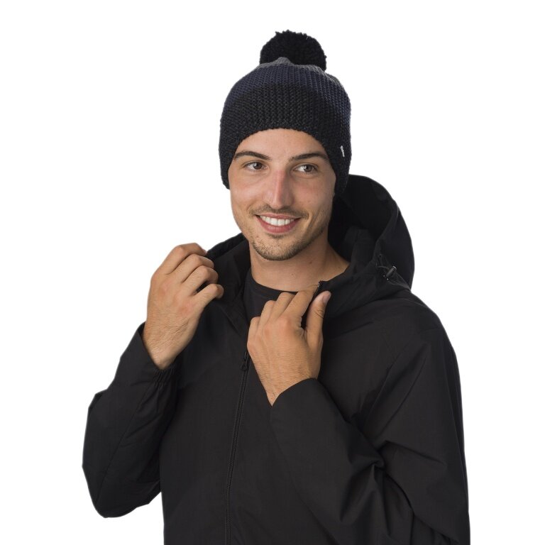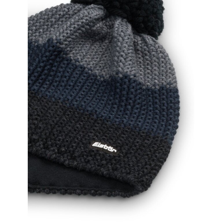 Eisbär Wintermütze Star mit Bommel (Pompon) schwarz/grau - 1 Stück