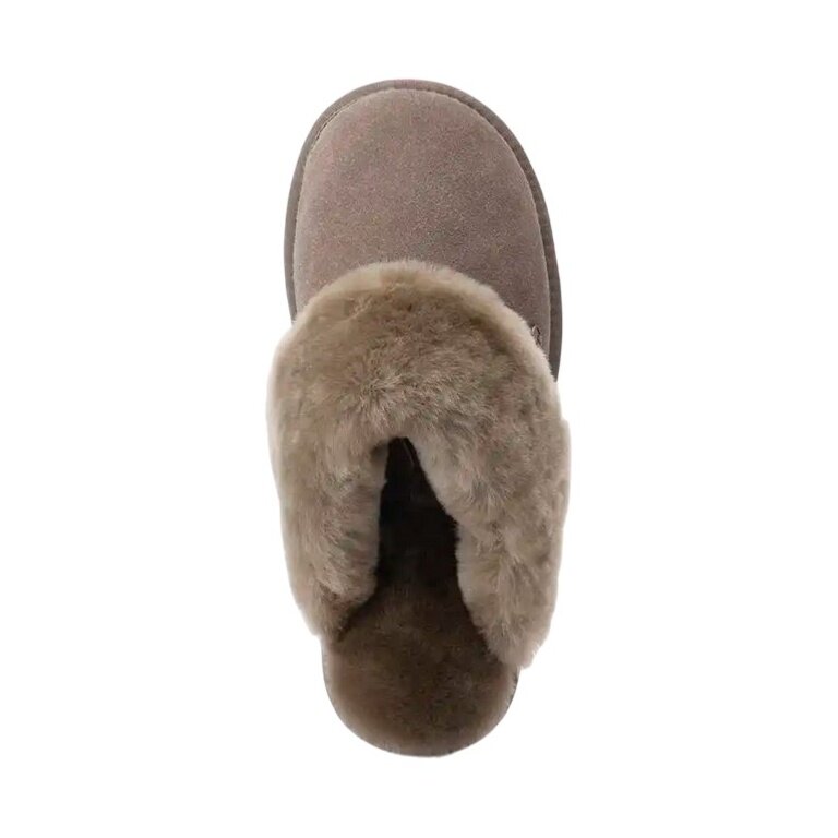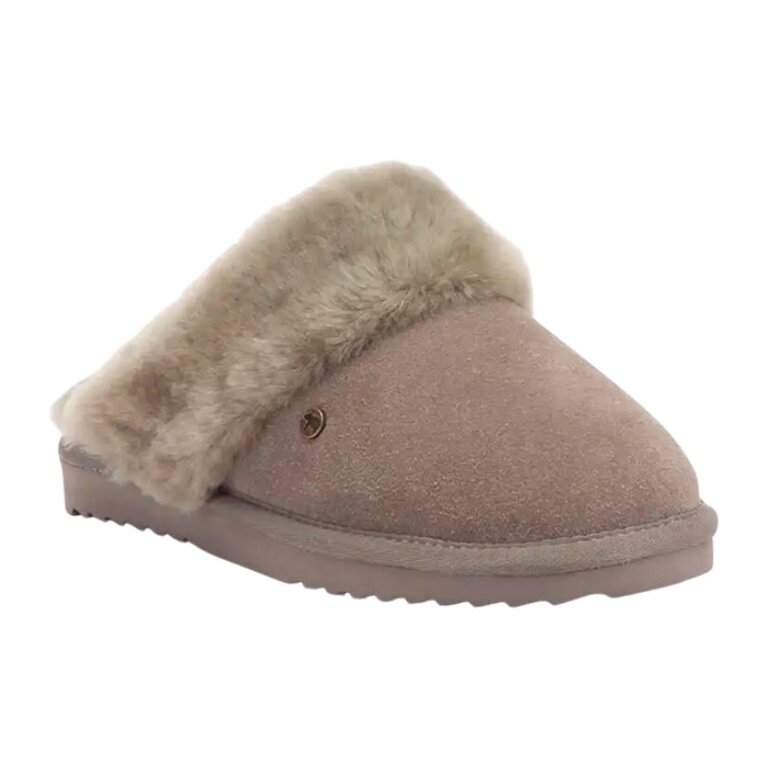 der kuschelige Hausschuh Warmbat Flurry für Damen besteht aus Wildleder mit einem Futter aus 100% Lammfell von australischen Merinoschafen