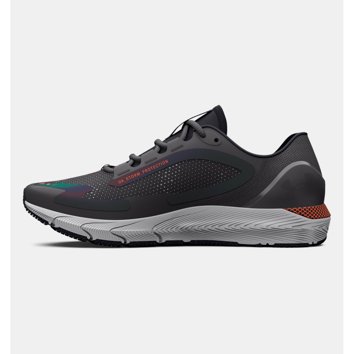 • das mit UA Storm-Technologie behandelte Obermaterial weist Wasser ab, ohne die Atmungsaktivität einzuschränken