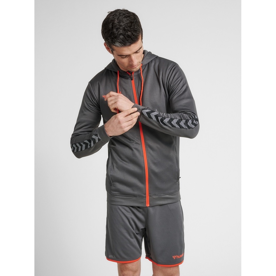 hummel Sport-Kapuzenjacke hmlAUTHENTIC Poly Zip Hoodie (gestrickter Polyester) mit Kapuze asphaltgrau Herren