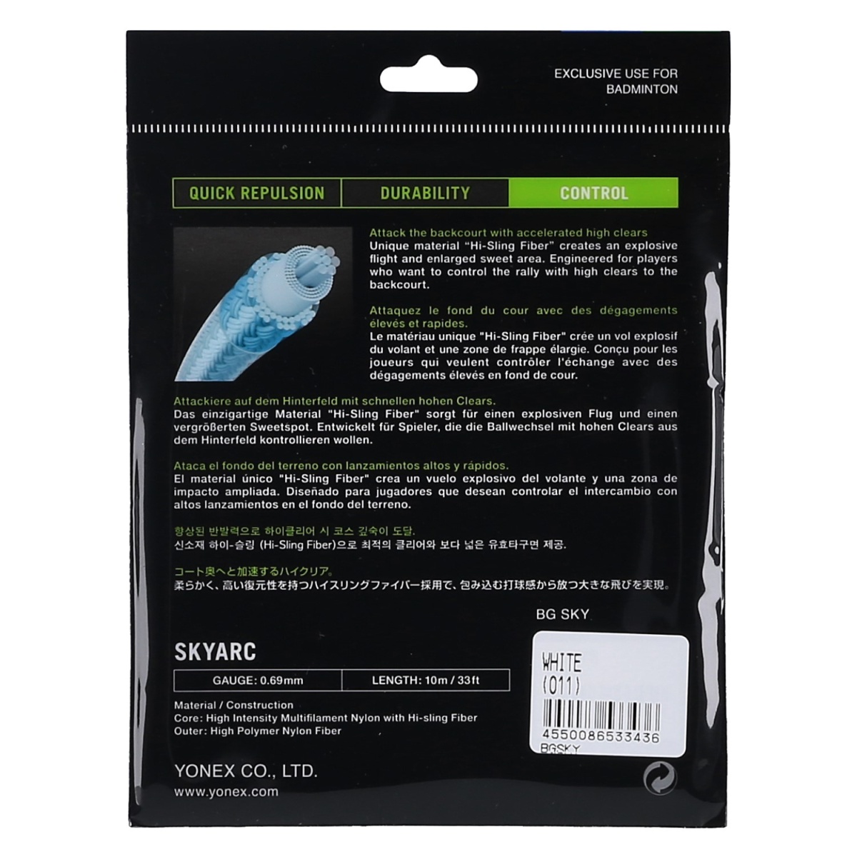 Yonex Badmintonsaite Skyarc 0.69 (Komfort+Kontrolle) weiss 10m Set
