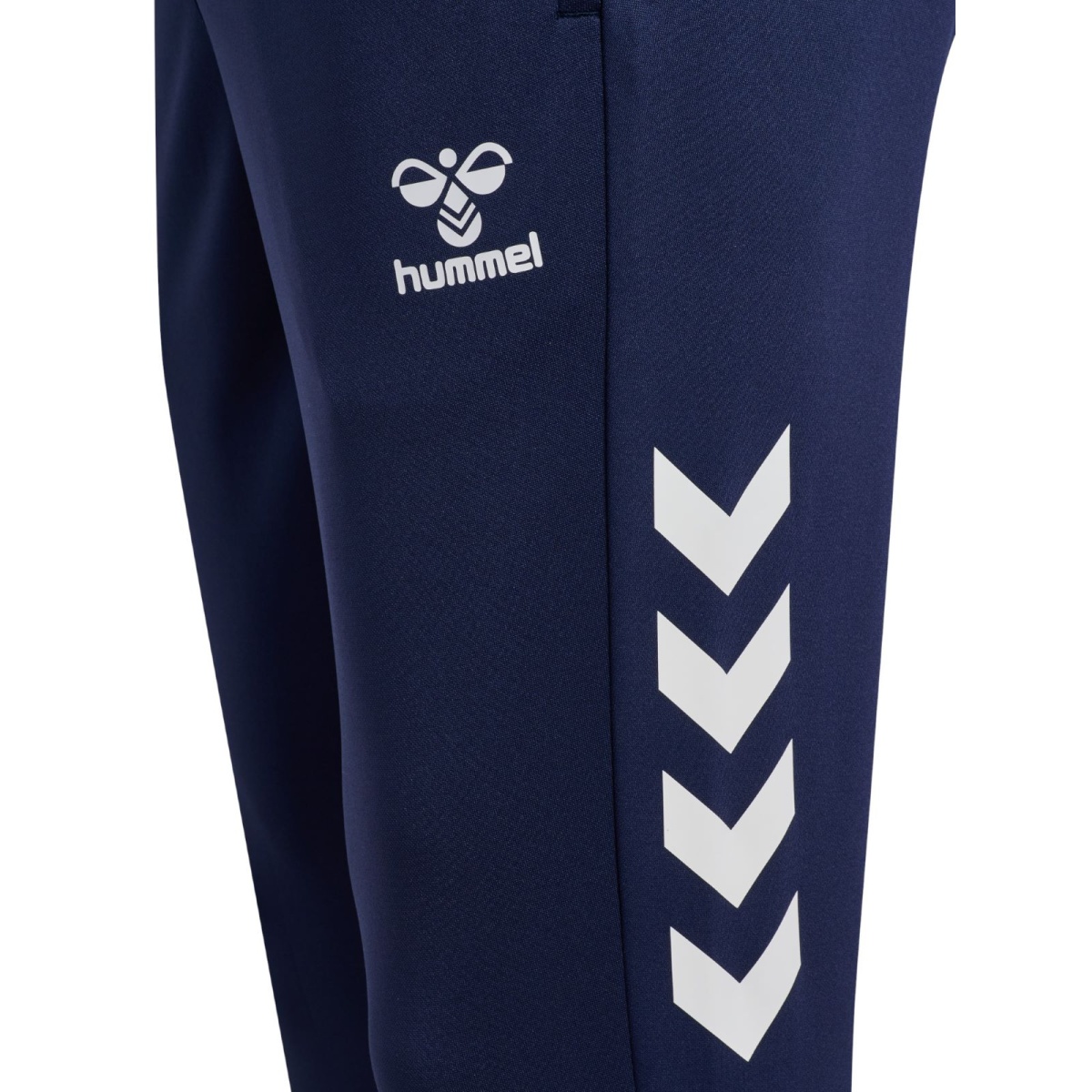 • die spitz zulaufenden Beine mit Reißverschlüssen an den Knöcheln erleichtern das An- und Ausziehen über die Schuhe, während die hummel Chevrons an den Seiten und ein reflektierendes Detail auf der Rückseite für einen modernen, sportlichen Look sorgen