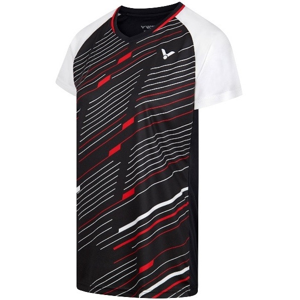 Victor Sport-Shirt T-44101 C (V-Ausschnitt) schwarz/weiss/rot Damen