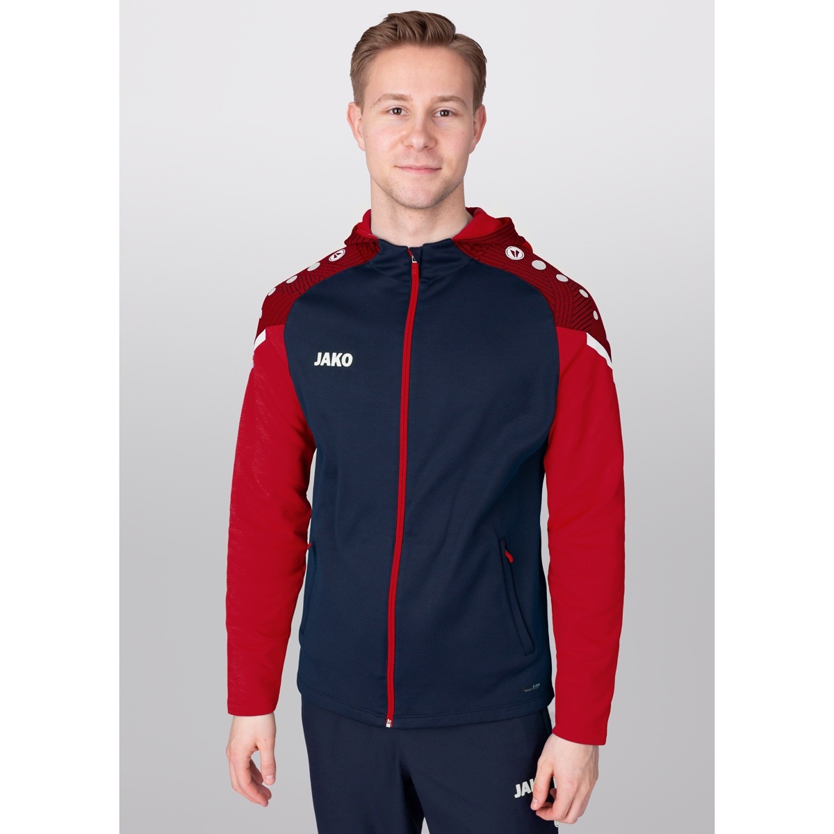 JAKO Präsentationsanzug Performance mit Kapuze (Jacke und Hose) marineblau/rot Herren